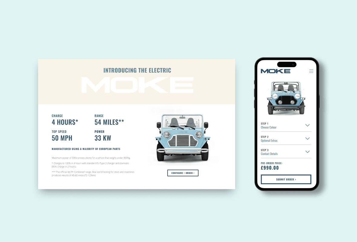 MOKE International had two requests to unify its digital presence and to shine a spotlight on its new product launch – the Electric MOKE. With several different websites based in different locations, MOKE lacked a strong and consistent brand identity and were at risk of missing out on valuable pre-orders.
