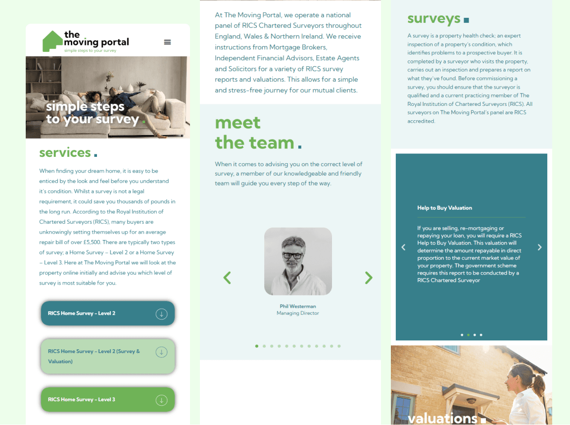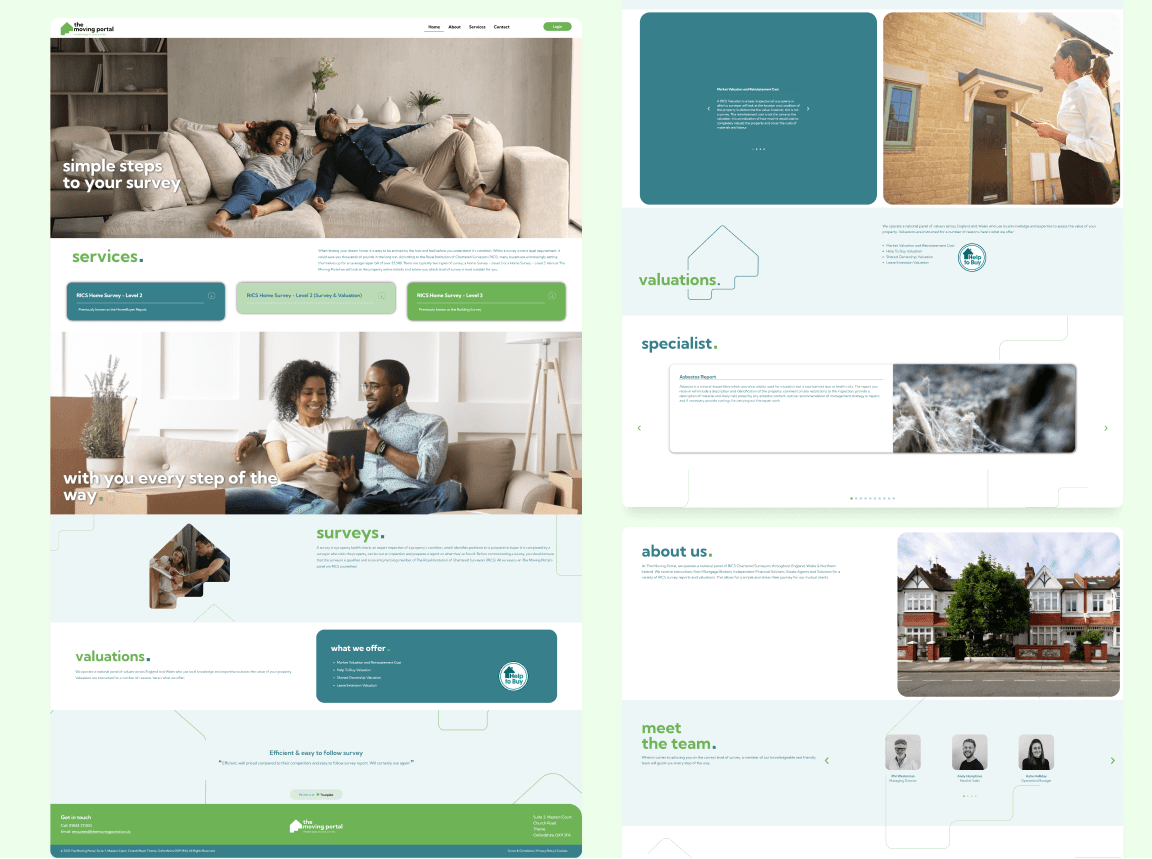 The final website delivers a clearer, more structured experience that helps users understand the service, feel informed, and act with confidence. The improved online presence supports Moving Portal in attracting new clients, communicating expertise, and standing out as a trustworthy partner in the property buying journey.